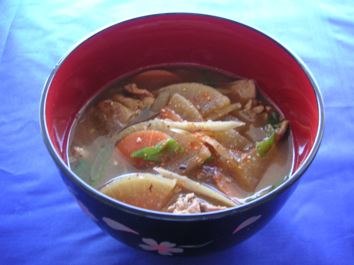 豆腐と若芽の味噌汁、あさり汁、豚汁